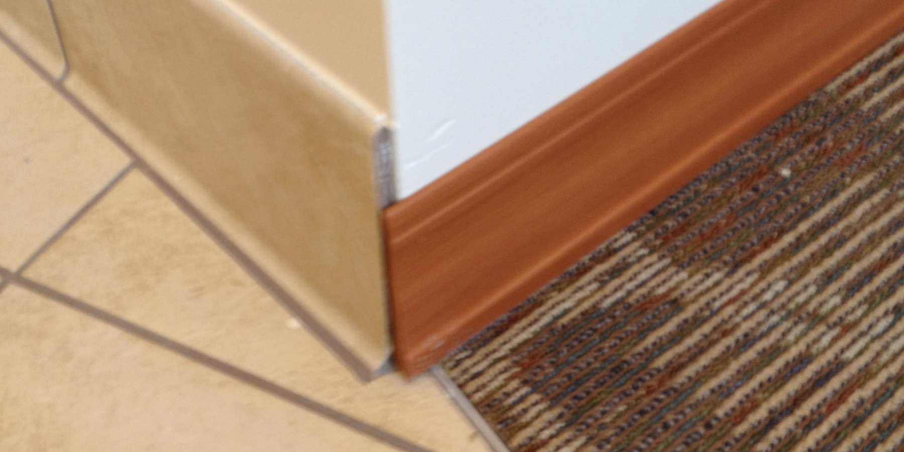 Know your corners. Know what happens when different finishes intersect. I think in our minds we though, “Where there’s tile floor, there’s tile wall base. Where’s there’s carpet floor, there’s vinyl base.” Sigh. This was painful to see and it was done. It was past the point of return. See if we can put a chair in front of it…